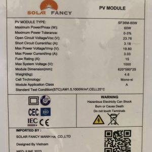 Tấm pin mặt trời 60w công nghệ mới của Solar Fancy, công nghệ 11 busbar ( 11 đường hàn trên cell pin) cho hiệu suất tốt hơn, kích thước nhỏ gọn hơn so với công nghệ cũ